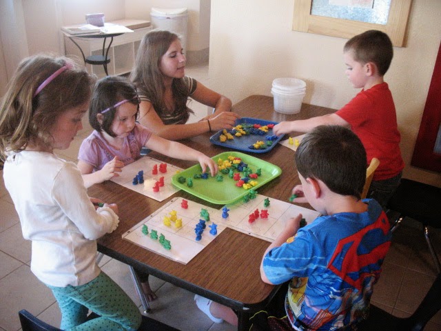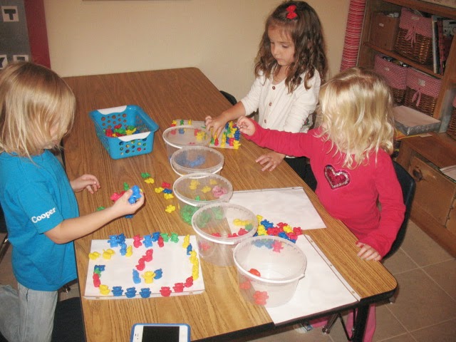 Afterwards, they had fun making their own bear families! We sorted the bears into buckets according to color when we were all through. There was some great learning going on!