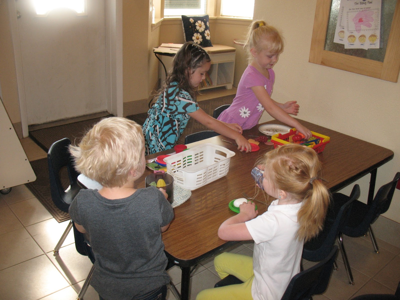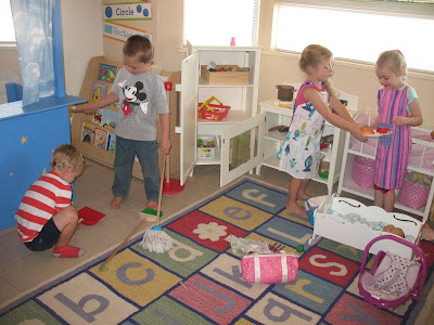 We played family in groups and acted out being different people in the family. Role playing and pretend play are important for children’s development.