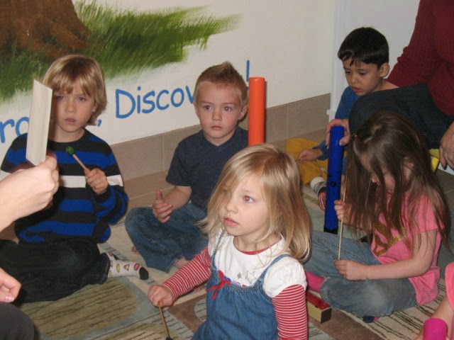 Thank you to Sarah for coming to teach music to our morning class! The kids absolutely loved playing “Jingle Bells” with the instruments she brought with her. These kids did a terrific job following her signs and playing the song together! I love great music times!
