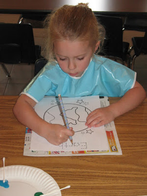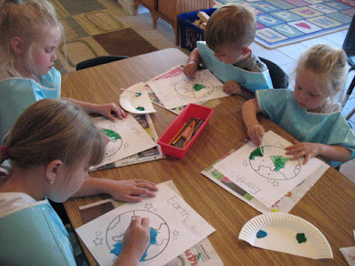 For our project, we worked on fine motor skills by writing letters and painting the Earth! They did a great job!