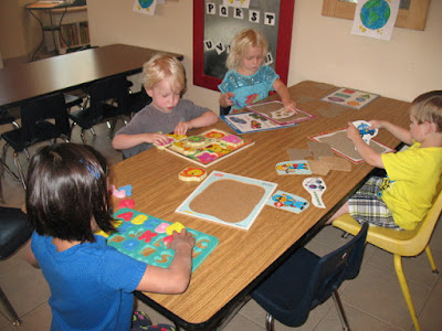 Working on puzzles together after snack time.